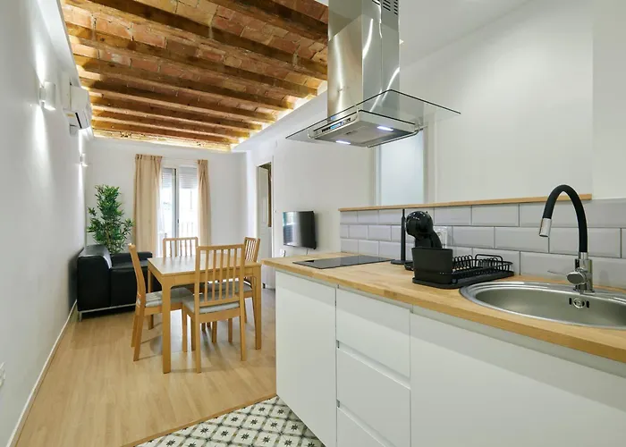 A fully equipped kitchen with a ceramic hob, a toaster, and kitchenware is available as part of the apartment's self-catering amenities. Poble Sec metro station is within a few blocks of the apartment.